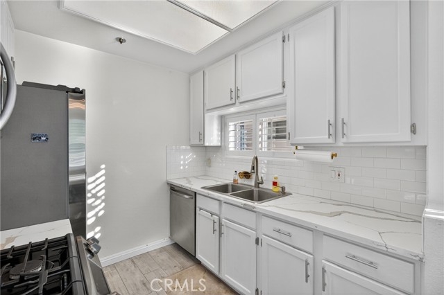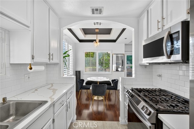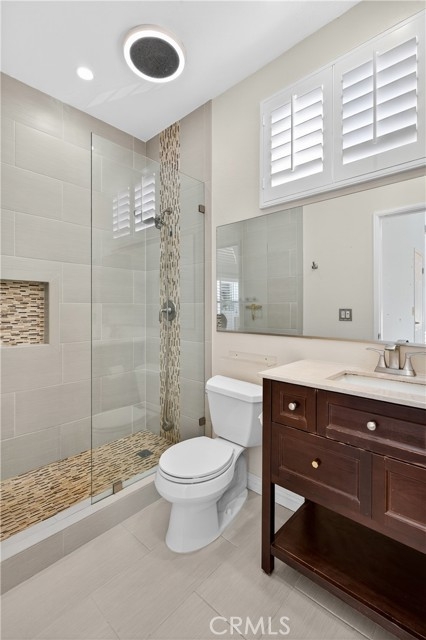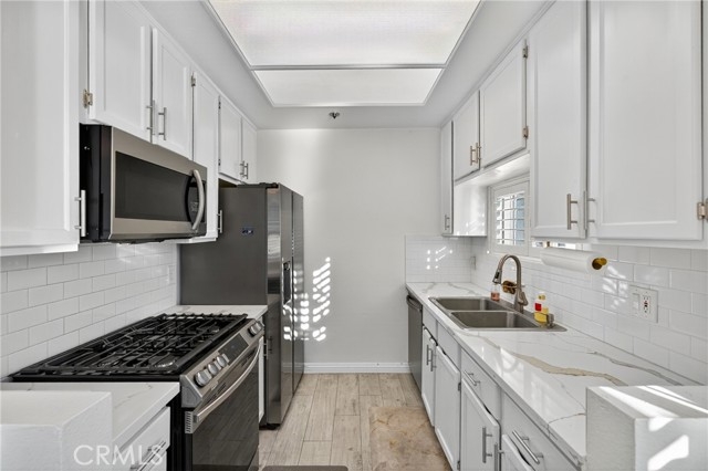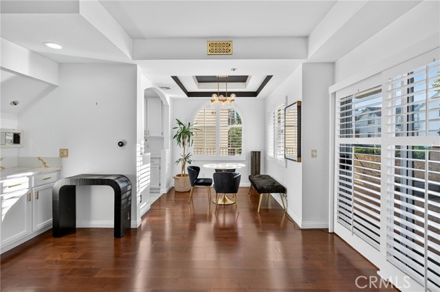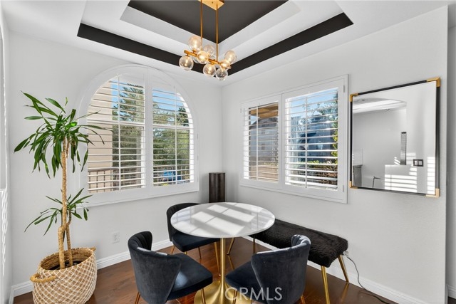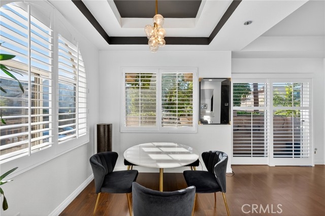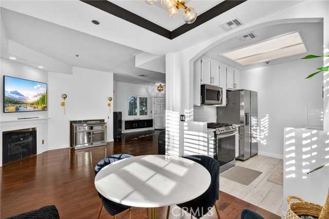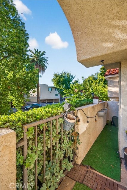 Prime front-corner unit with private balcony tucked away on a quiet, tree-lined street, this exquisite front-corner unit is the crown jewel of the Amigo Villa community. Offering 2 spacious bedrooms, 2.5 bathrooms, and thoughtful upgrades throughout, this home blends modern luxury with everyday convenience. Step inside to a bright and inviting layout featuring custom wooden shutters, rich hardwood flooring, and a spacious entryway with built-in storage beneath the staircase. The home is pre-wired with a full alarm system and secured with an intercom panel and remote-controlled door access, ensuring both comfort and peace of mind. Natural light floods the living spaces through oversized windows, while a cozy gas fireplace and balcony with sliding shutter doors create the perfect atmosphere for relaxing or entertaining. The open-concept dining area impresses with a stunning arched window, modern tray ceiling, and brushed nickel chandelier. The recently remodeled kitchen is a chef’s delight—complete with Quartz countertops, sleek Samsung appliances, gas range, oven, microwave, dishwasher, and refrigerator. A convenient half bath on the main floor is perfect for guests. Upstairs, retreat to the luxurious master suite, boasting soaring cathedral ceilings, a private balcony, a custom walk-in closet, and a spa-like en-suite bathroom with a Bluetooth LED music/light fan—your very own in-home retreat. The second bedroom is equally inviting, featuring mirrored sliding doors and direct access to a fully updated bathroom with the same smart-lighting upgrade. Additional features include: * In-unit laundry with new washer & dryer * Two secure covered parking spaces + guest parking * Gated courtyard complex with conference room and controlled access *Recreation/ workout room *HOA covers water and trash Centrally located, this home is just minutes from the Northridge Fashion Center, top-rated dining, shopping, and entertainment. Reseda Elementary is only steps away, making it perfect for families. Whether you’re a first-time buyer, moving up, or searching for the ideal Valley lifestyle, this home checks every box. Don’t miss the chance to call this condo yours—schedule a private tour today!