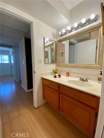 Great top-floor condo in the gated Park Reseda complex. Great location within the complex, away from Reseda. The unit has 2 BR + 1.5 BA with spacious master with walk-in closet. Living room facing the huge balcony. Updated, remodeled kitchen. Laminated floors, smooth ceilings, recessed lights, central a/c. Nice complex that provides a pool area and playground for the kids. Tennis and basketball courts, clubhouse. Gated underground parking garage has two tandem parking spaces, plus optional storage & parking. Security patrols. Common laundry. Complex is close to shopping centers, to the freeway and walking distance to restaurants. Perfect starter home.