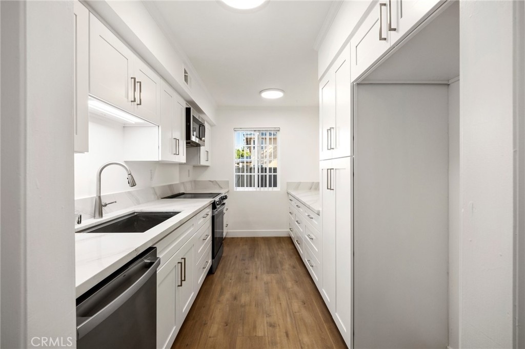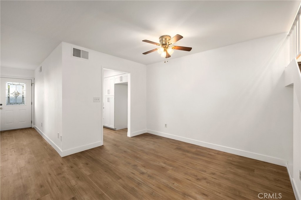 Nestled inside a gated community, this two-story townhome offers comfort and privacy. Surrounded by lush, park-like grounds and access to sparkling community pools, this three-bedroom, two-and-a-half-bathroom residence is a true gem. Step inside to discover a host of modern upgrades including a remodeled kitchen that boasts sleek quartz countertops, stainless appliances, and ample cabinetry, making it both functional and stylish. You will also love the fresh paint and luxury vinyl flooring throughout. Outdoor living is a highlight of this home, with a spacious first-floor patio providing the perfect spot for morning coffee or evening gatherings, while a large upstairs patio spans the length of the unit, offering additional space to relax. The 2-car direct-access garage is already configured for a NEMA outlet electric vehicle charger. With its exceptional features and prime location, this townhome is ready to impress.